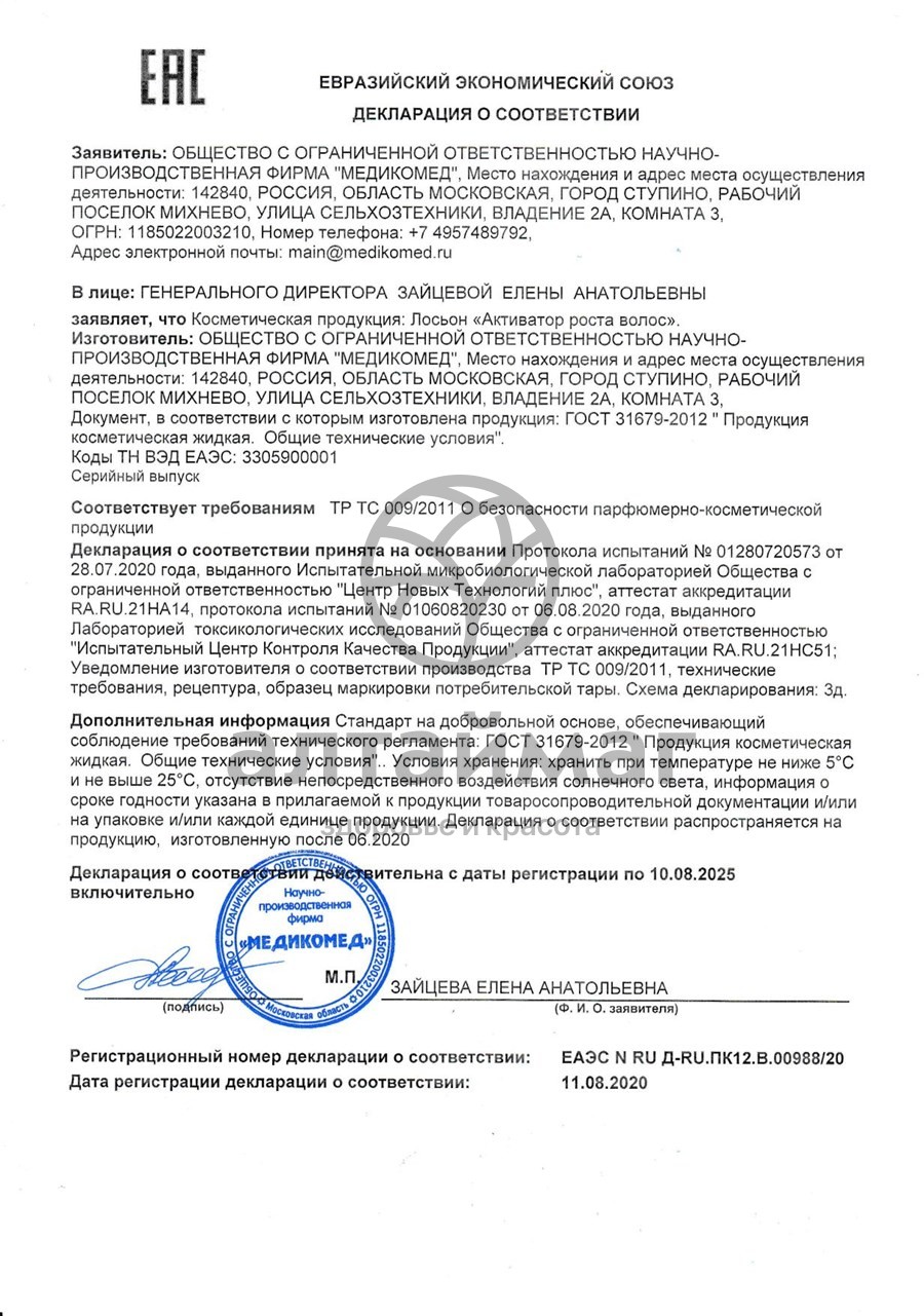 Активатор роста волос лосьон Медикомед 250мл оптом