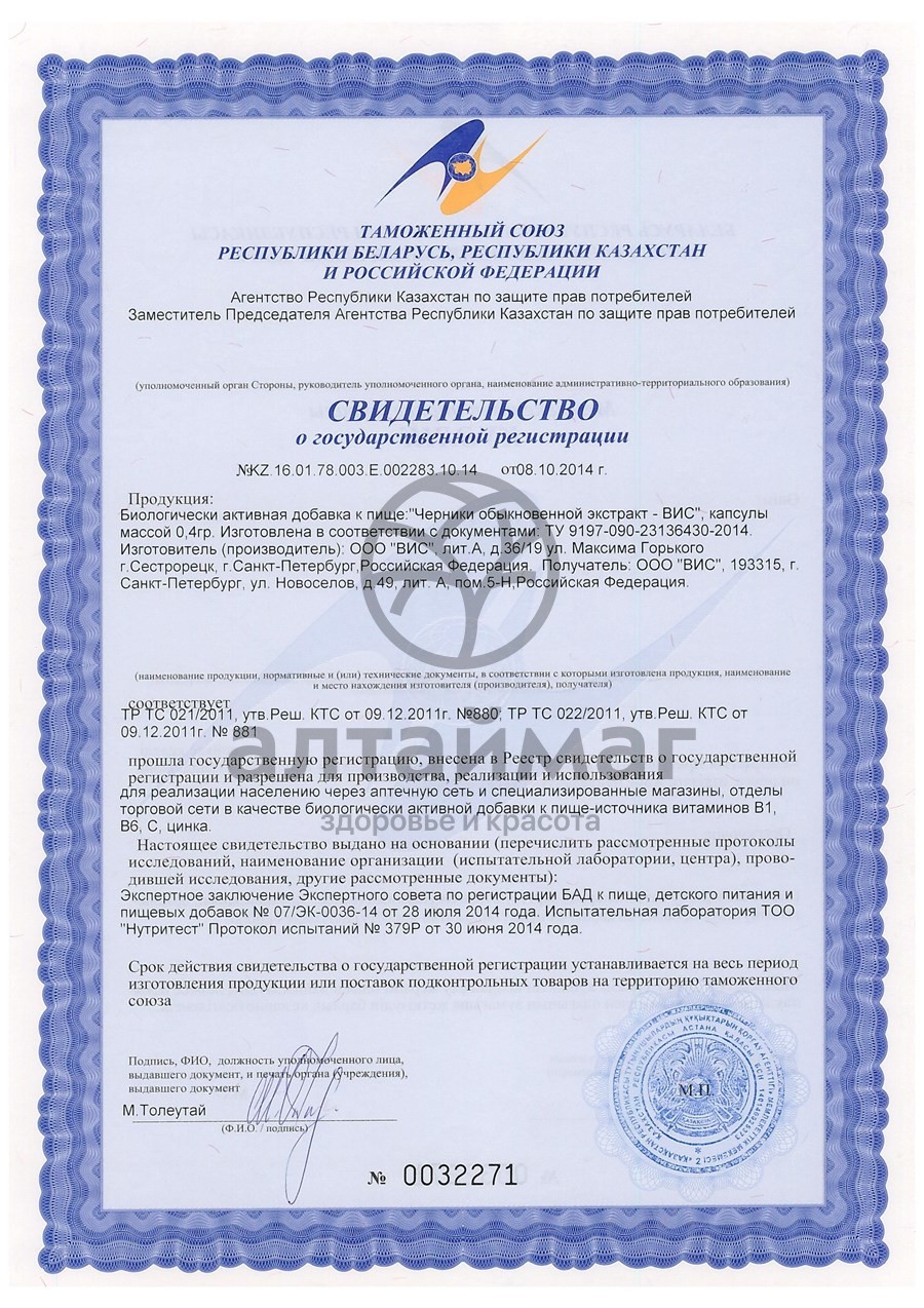 Экстракт Черники обыкновенной ВИС 120 капсул оптом