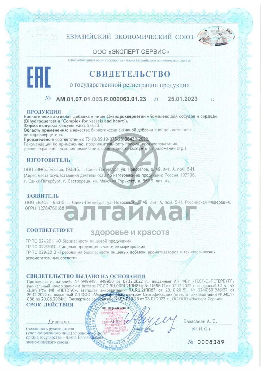 Дигидpоквеpцетин Комплекс для сосудов и сеpдца ВИС 30 капсул оптом