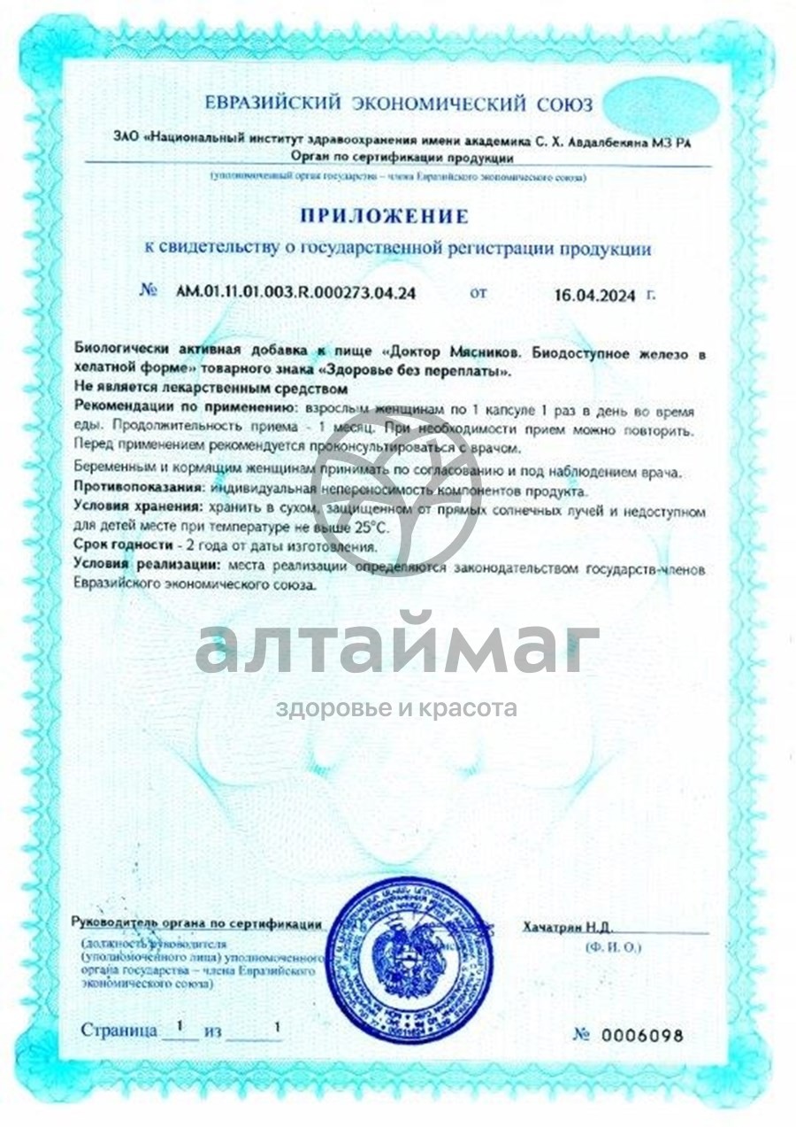 Железо хелат Доктор Мясников 30 капсул оптом