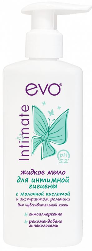 Специально разработан для ухода за нежной и чувствительной кожей интимных зон. Содержит специальный активный комплекс для поддержания здоровья кожи. Мягкая формула с молочной кислотой не содержит щелочного мыла, деликатно очищает, сохраняет естественный уровень pH кожи и предотвращает раздражение и сухость. Жидкое мыло для интимной гигиены для интимной гигиены «evo» дарит ощущение комфорта, мягкости и чистоты на весь день. Рекомендовано врачами-гинекологами и дерматолагами для ежедневной интимной гигиены женщин любого возраста.Состав жидкого мыла для интимной гигиены ЭВО: