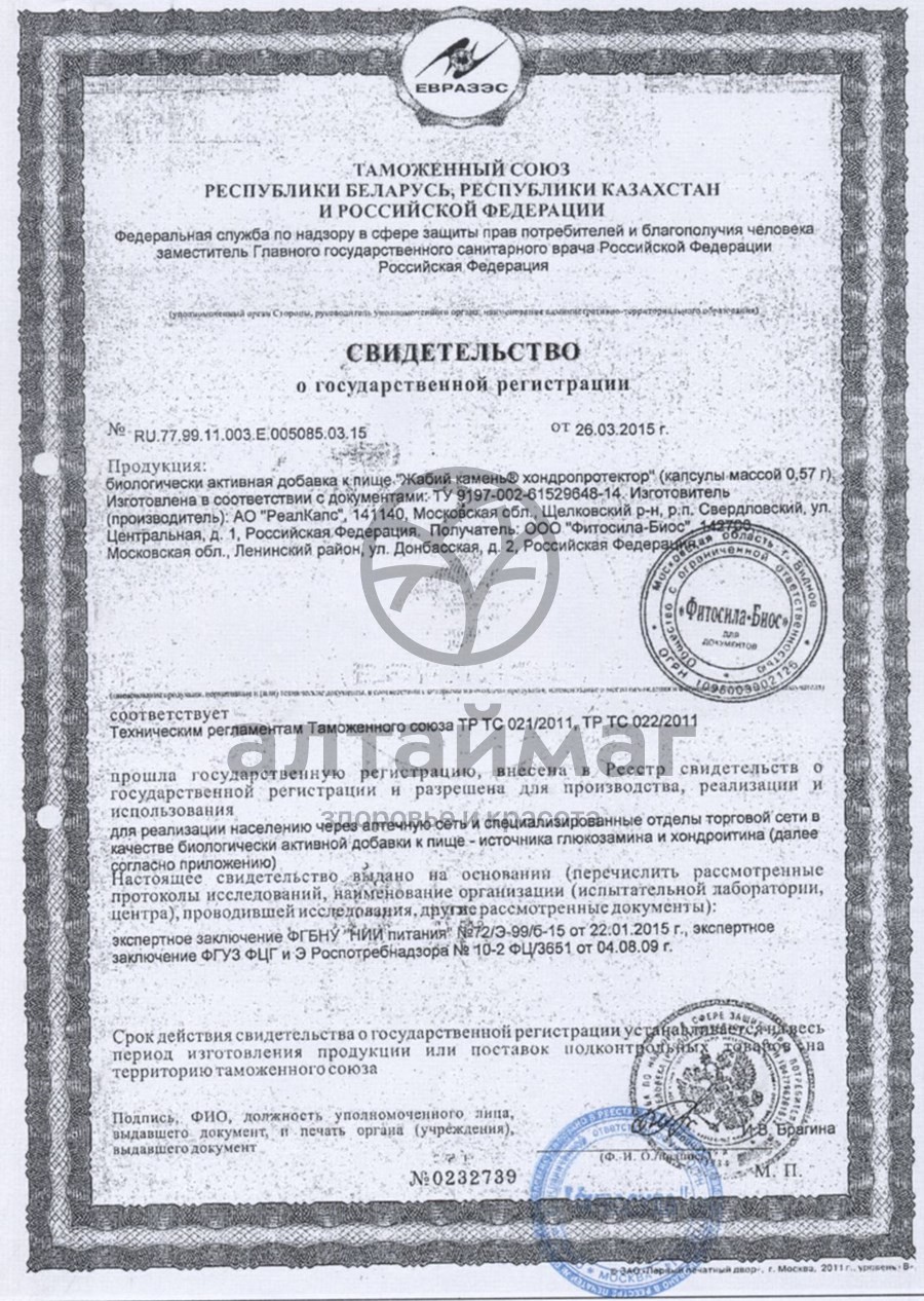 Жабий камень хондропротектор, показания к применениюХондропротектор «Жабий камень» показан в качестве сопутствующего лечения дегенеративно-дистрофических заболеваний суставов и позвоночника: