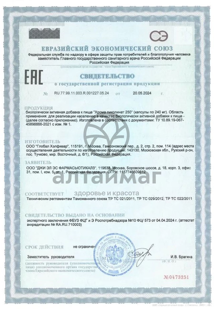 Хром (из хрома пиколината) — 250 мкг.Способ применения