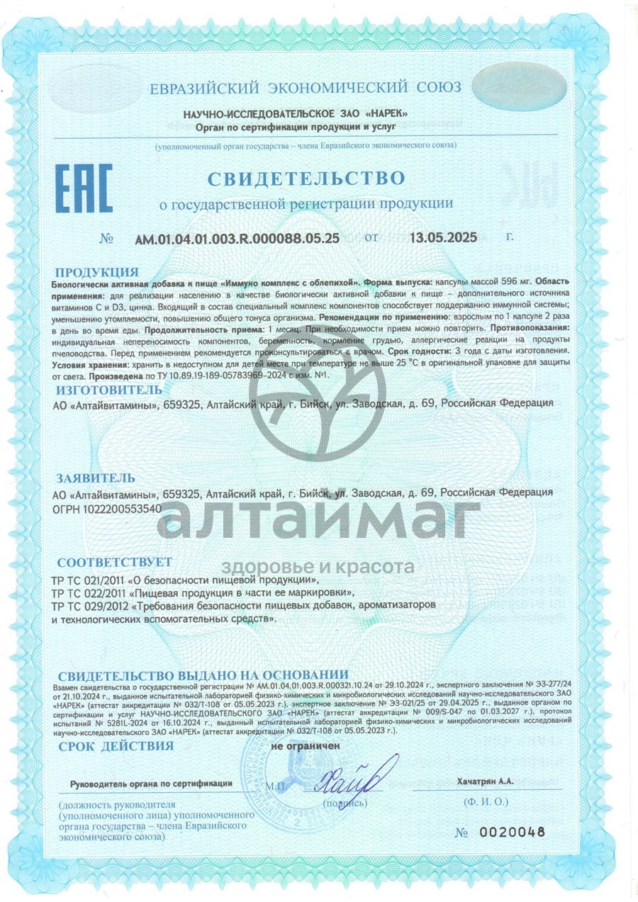 Комплекс Иммуно с облепихой Алтайвитамины 60 капсул оптом