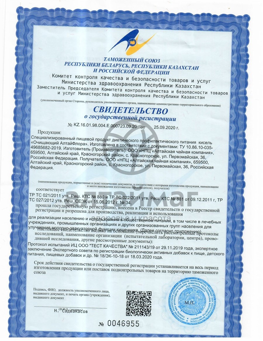 Специализированный пищевой продукт диетического профилактического питания кисель «Очищающий Алтайфлора»Способ применения