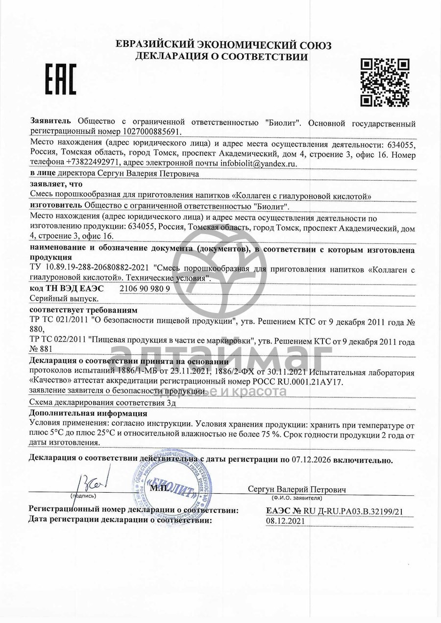 Купите Коллаген с гиалуроновой кислотой биолит 300 г по оптовой цене с доставкой до вашего склада или заберите заказ из ближайшего пункта выдачи транспортной компании, сделав заказ на opt.altaimag.ru. Цена оптом на Коллаген с гиалуроновой кислотой биолит 300 г — 2 089.27 ₽. Инструкцию по применению, описание и сертификаты вы можете посмотреть в карточке товара. Чтобы купить Коллаген с гиалуроновой кислотой биолит 300 г совершите всего несколько шагов: укажите количество продукта и нажмите на кнопку «Добавить в корзину» или позвоните по телефону по номеру +7 (499) 348 1482 в Москве или 8 (800) 500-45-25 (звонок по РФ бесплатный).
