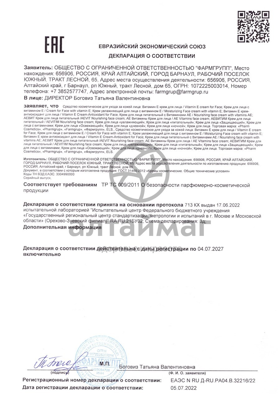 Крем для лица с витаминами АЕ Фармгрупп 50мл оптом