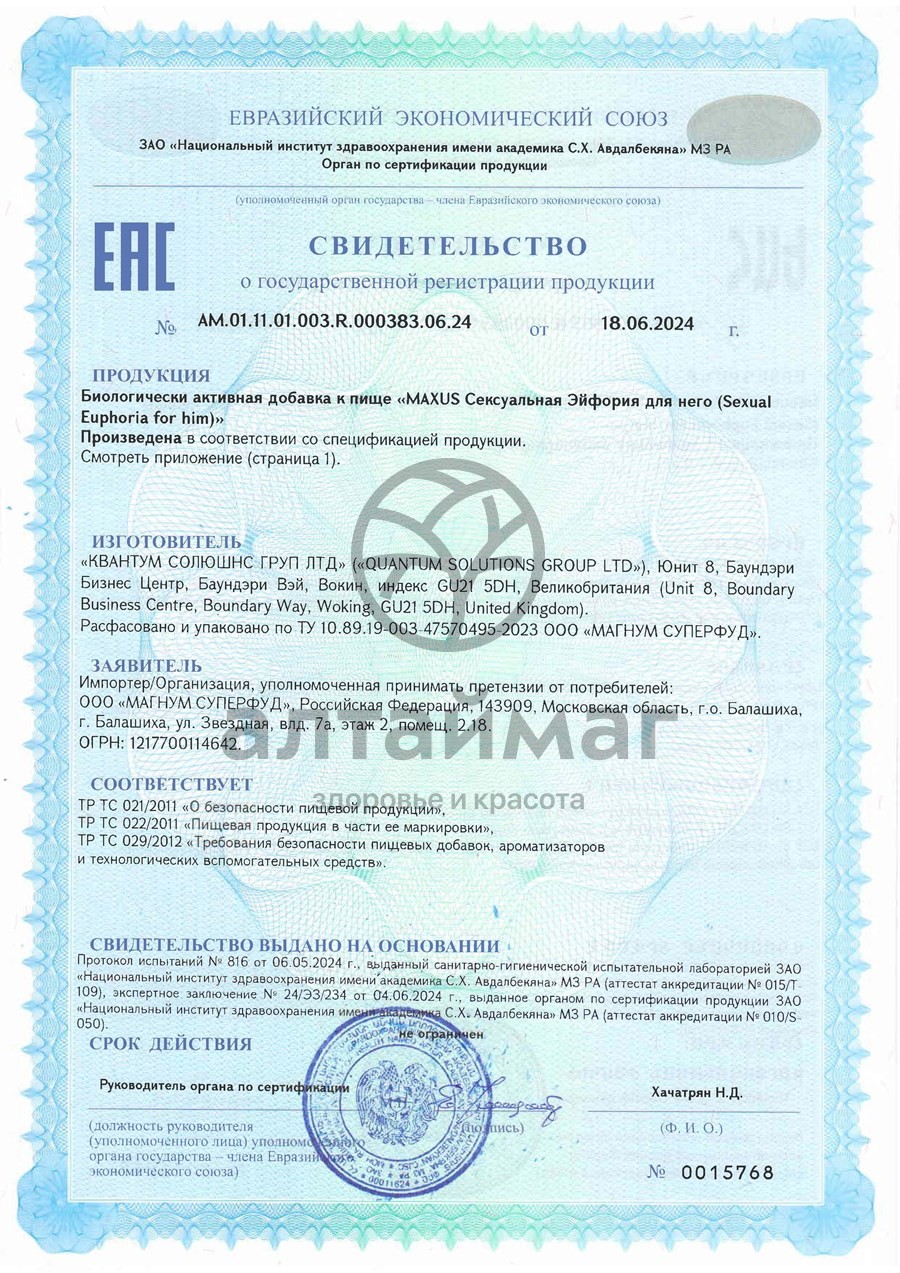 Maxus Sexual Euphoria для него 60 капсул оптом