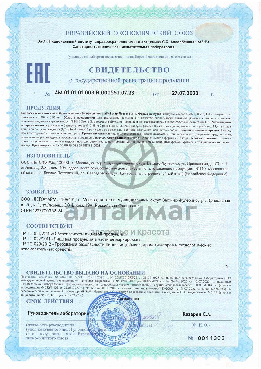 Рыбий жир Лососевый Биафишенол Летофарм БАД 100 капсул оптом