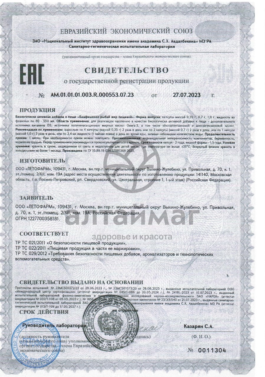 Рыбий жир Биафишенол пищевой 120 капсул оптом
