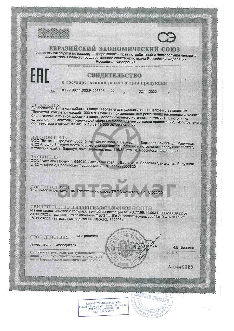 Шалфей с эвкалиптом ЛекАлтай 20 таблеток оптом