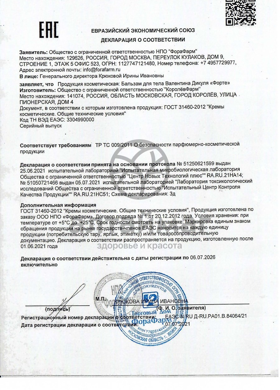 Состав Валентина дикуля форте бальзам для суставов:
