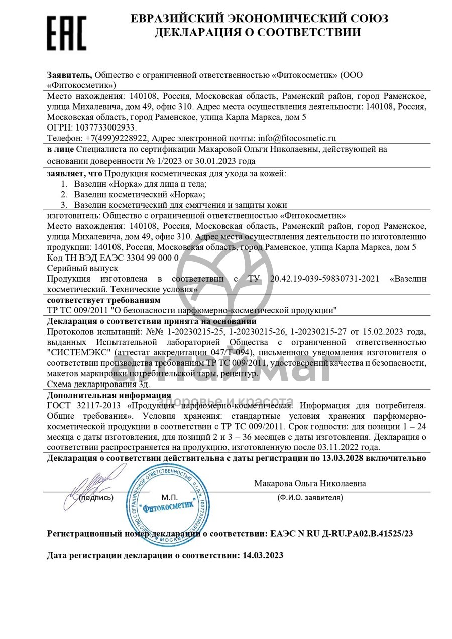 Вазелин "Фитокосметик" норка для лица и тела 45мл