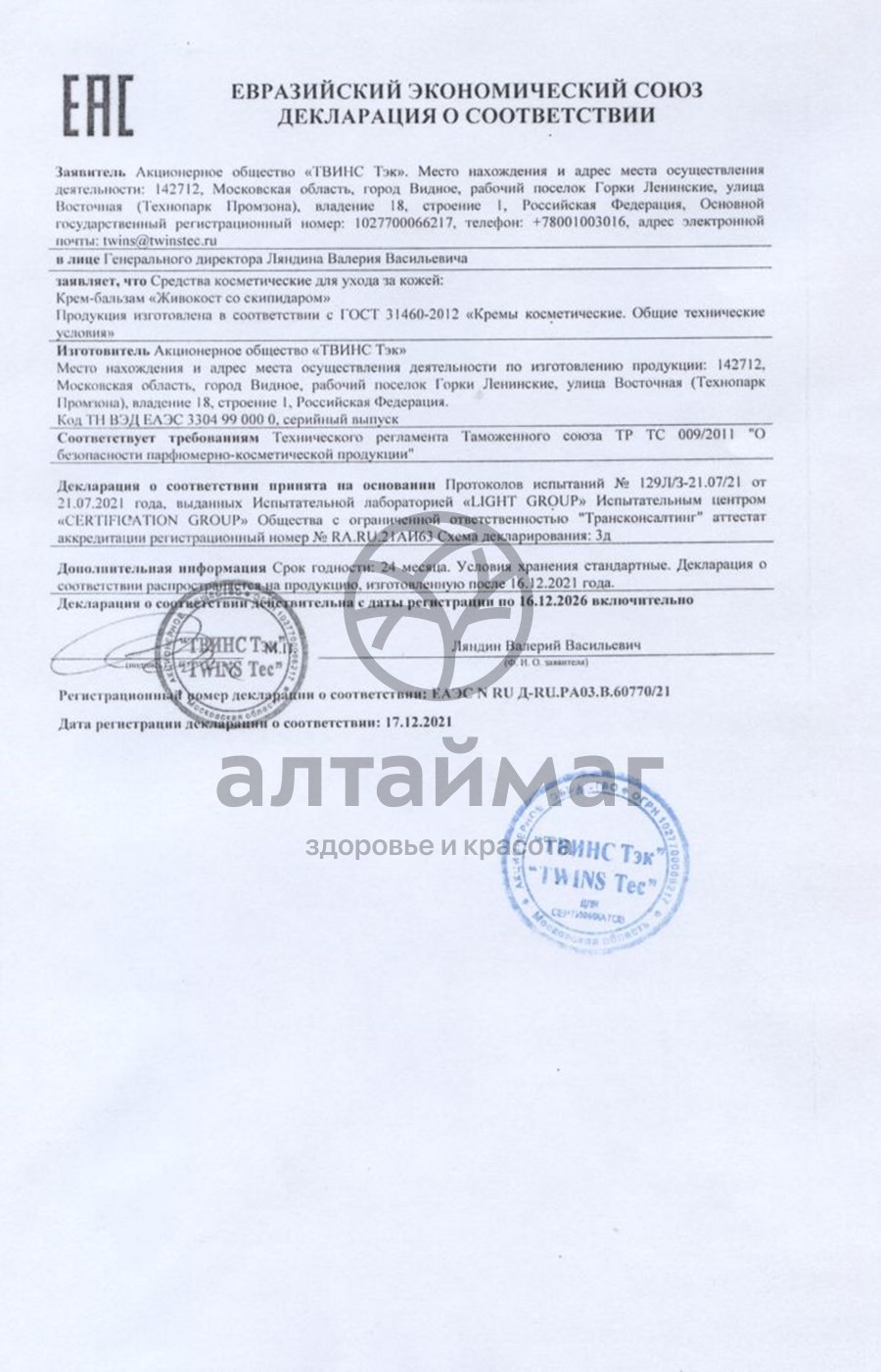 - Вся продукция сертифицирована